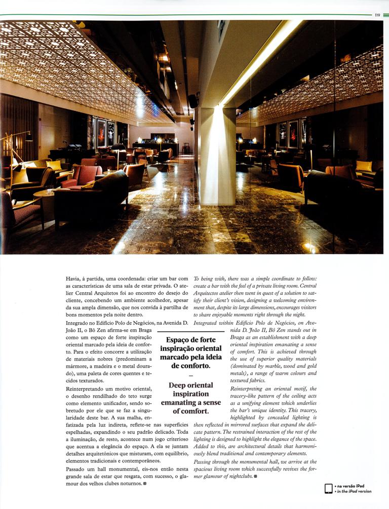 Bar Bô Zen, design de interiores da Central Arquitectos, publicado na revista portuguesa Attitude (Julho-Agosto 2013).